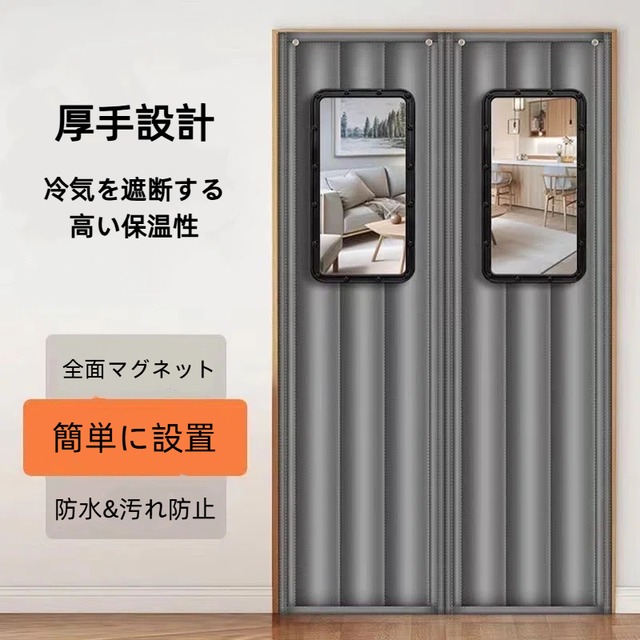 ●【簡単な取り付け】:壁面を破壊することなく取り付けが完了でき、カーテン上部の幅広のベルクロ(4cm)デザインにより、効果的に接着力が強化され、カーテンが落ちにくくなります。女性でも簡単に取り付けられる。 分解する必要がある場合は、ヘアドライヤーの熱風を使用して接着剤を溶かしてください。ドアフレームに残留物が残りません。 ●【高品質素材】:のれんは高密度オックスフォード生地で作られており、耐久性があり、長持ちします。 細長い磁石を密に配置して最適なシールを実現することで、隙間なく素早く自動的に閉じることができます。 内部は厚い白いシルクコットンで満たされており、熱損失を効果的に防ぎ、電気とお金を節約し。 ●【幅広い用途】:窓部分は透明PVCなので、外の天気をいつでもチェックできて超便利!断熱ドアカーテンはエアコン付きの部屋に最適です。冷暖房の漏れを防ぎ:夏はエアコンから出る冷気の漏れを防ぎ、冬は室内の暖房の漏れも防ぎます。冬は暖かく、夏は涼しい、電気とお金の節約に役立ちます。厚手の素材により、外部の騒音を軽減し、静かでプライベートな空間を提供します。キッチンでも使用でき、料理の匂いが部屋に広がるのを防ぎます。 ●【子供とペットに優しい】:家族、猫、犬がいつでも自由に動き回れ、ドアカーテンを通過するとすぐに閉まり、気密性も保ちます。ハンドルを回したりロックを解除したりせずにすぐに通過できます。急いでいるときは、このドア カーテンが問題を解決します。お子様やペットのいる忙しいご家族に最適です。 ●【サイズの選択】:購入する前に、ドアの高さと幅(ドアフレームを含まない)をよく測定してください。 サイズ選びがわからない場合はお気軽にお問い合わせください。 (手動測定のため、2〜4cmの誤差が生じる場合があります)。