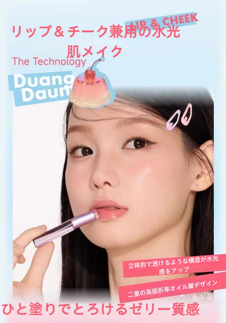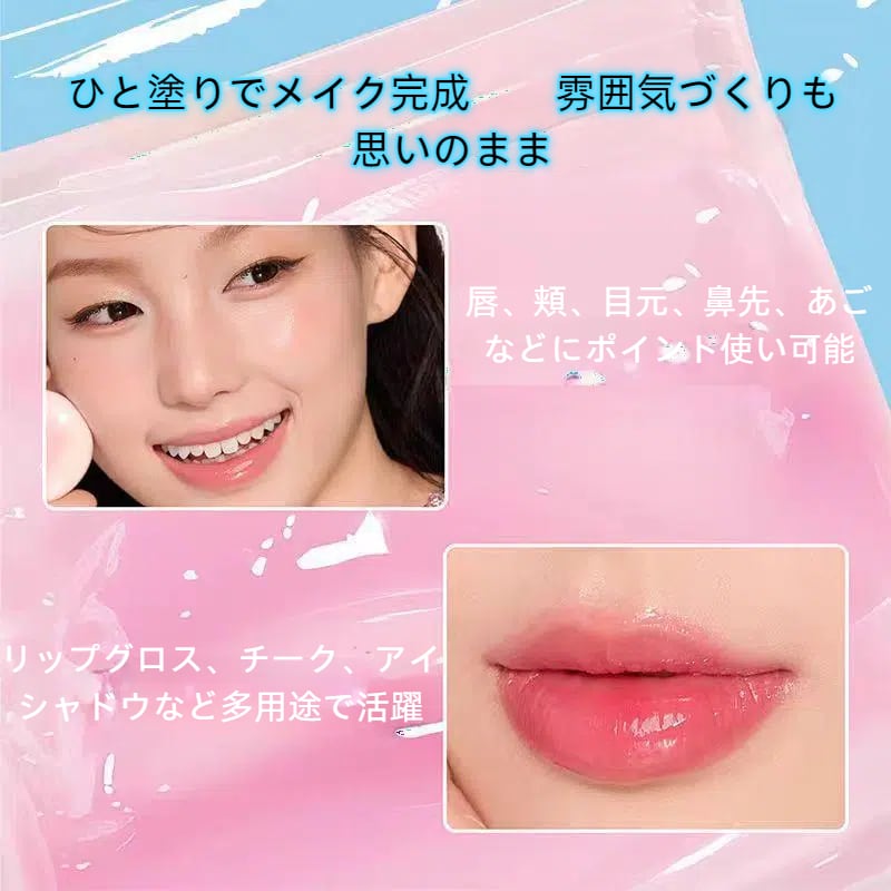 ゼリーチーク&水光マルチバームは、肌にスッと溶け込むような美しい仕上がりを提供するアイテムです!透明感のある水光感と色づきが特徴で、メイクをより引き立ててくれます。おしゃれな見た目と高機能を兼ね備えたこのバームで、毎日のメイクを楽しみましょう!