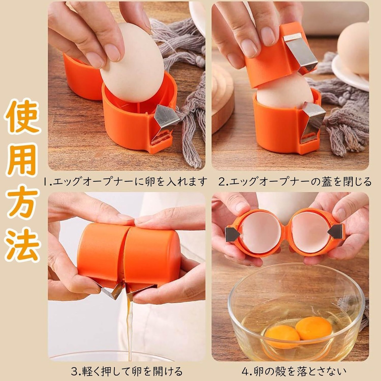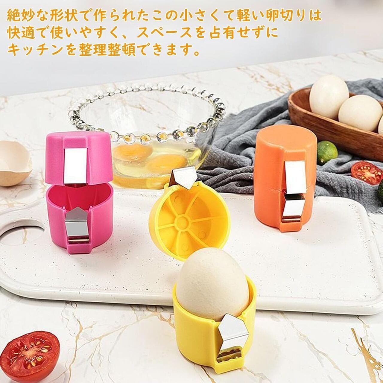 このエッグオープナーは、簡単に使えるシンプルな機構を持ち、料理初心者からプロの方まで、全ての方におすすめです。美しいデザインはキッチンにマッチし、機能性を兼ね備えたスタイリッシュなアイテムです。キッチンでの料理の時間をより楽しむための必須アイテムとして、このエッグシェルオープナーをぜひお試しください!