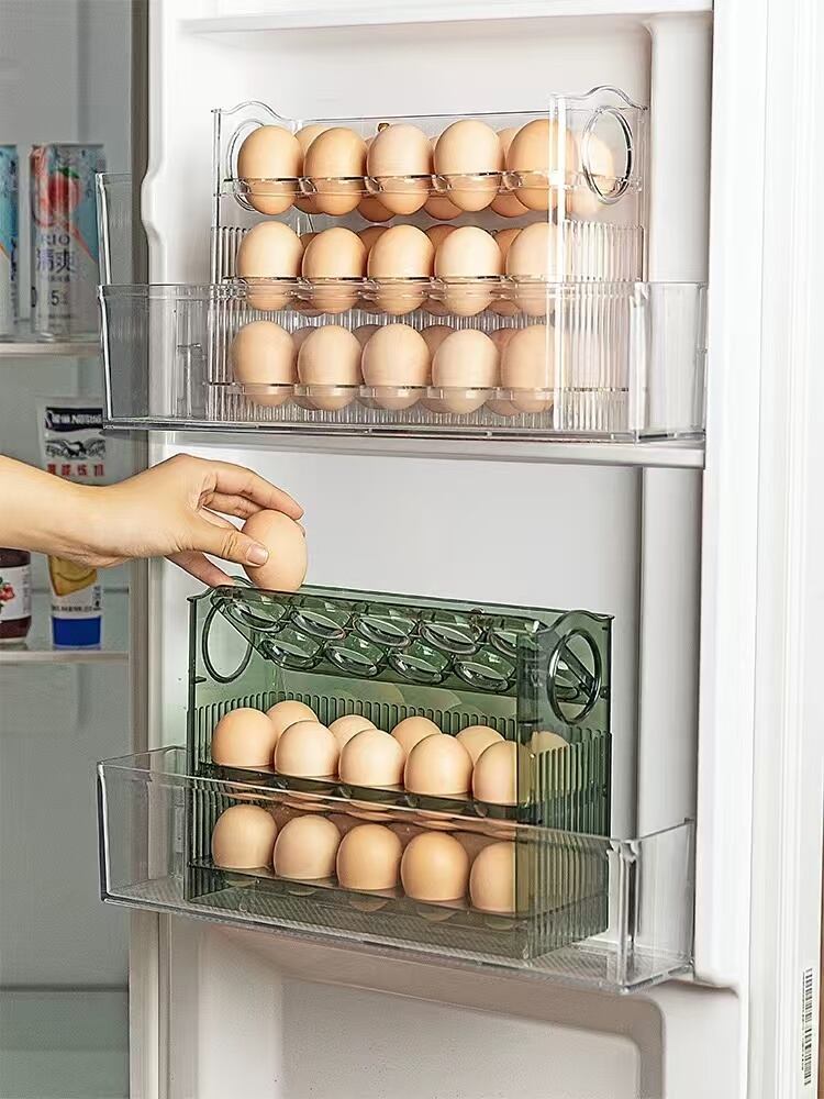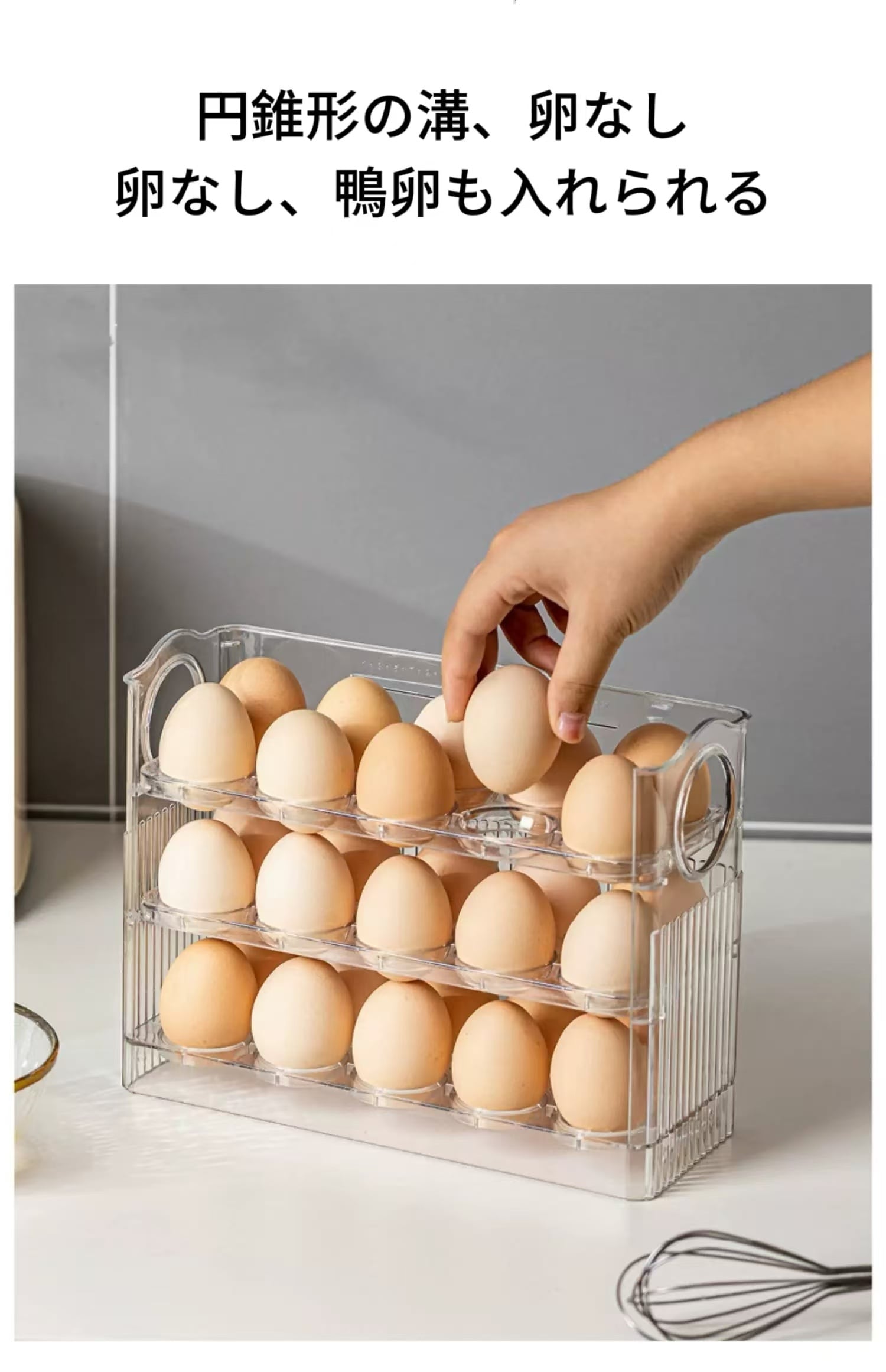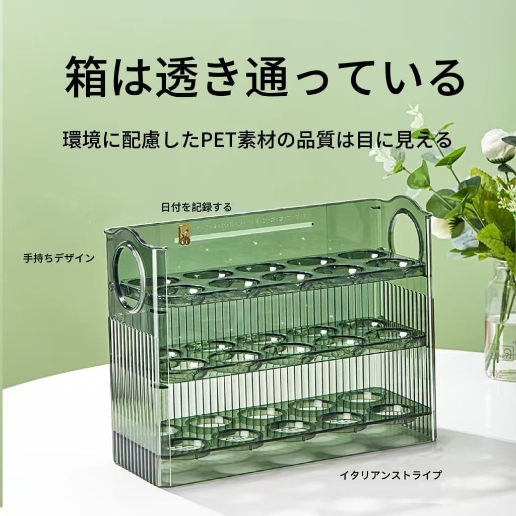 エッグオーガナイザー 冷蔵庫 サイドドア オーガナイザー オートフリップ エッグコンテナーを使って、冷蔵庫内の卵をスマートに収納しましょう!このアイテムが、あなたのキッチンを整え、生活をより快適にしてくれることでしょうので、ぜひお試しください!