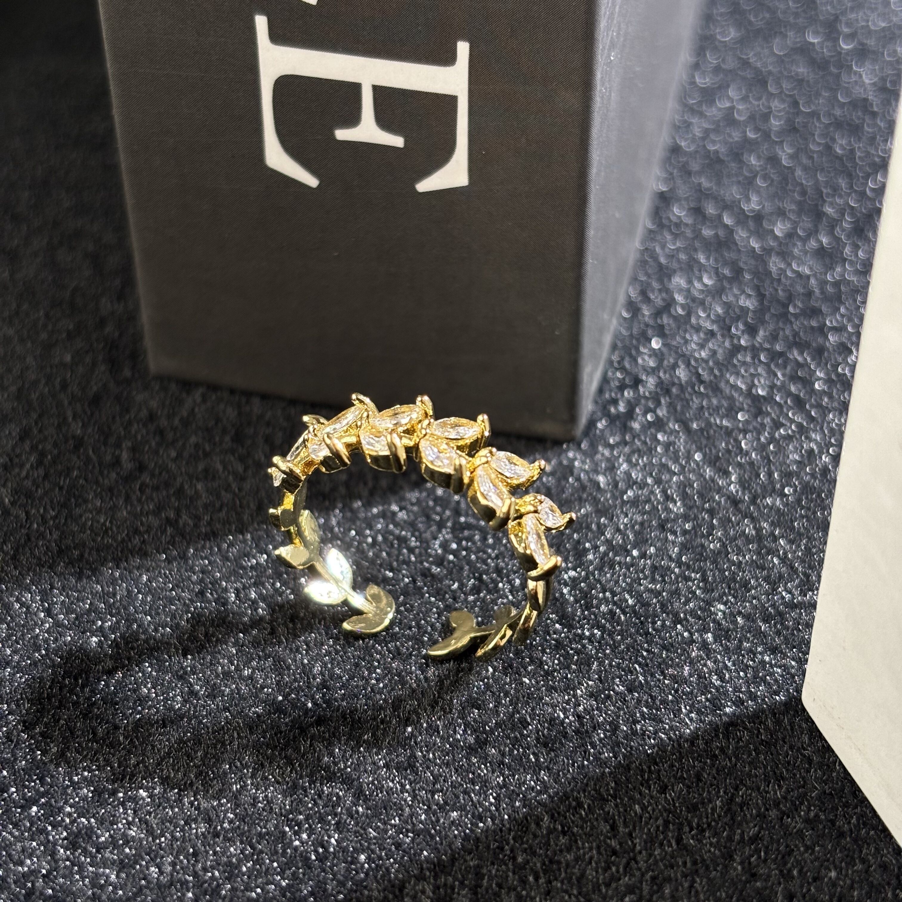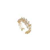 **商品名**:シンプルでスタイリッシュな葉のデザインの金色のリング、調節可能なオープンデザインです。