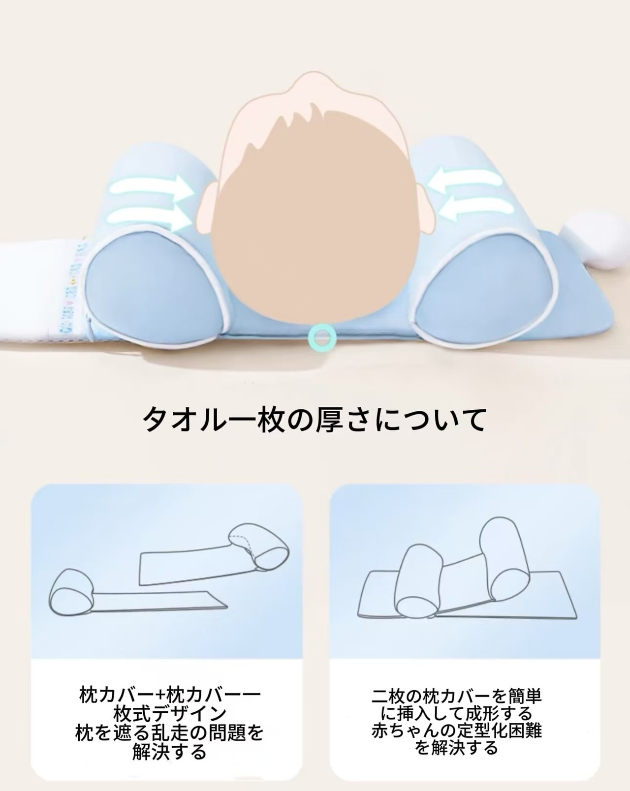 【商品名】幼児アワ立体枕0-6ヶ月1歳の赤ちゃん新生児取り外し可能洗える抗偏頭通気性引き出し枕