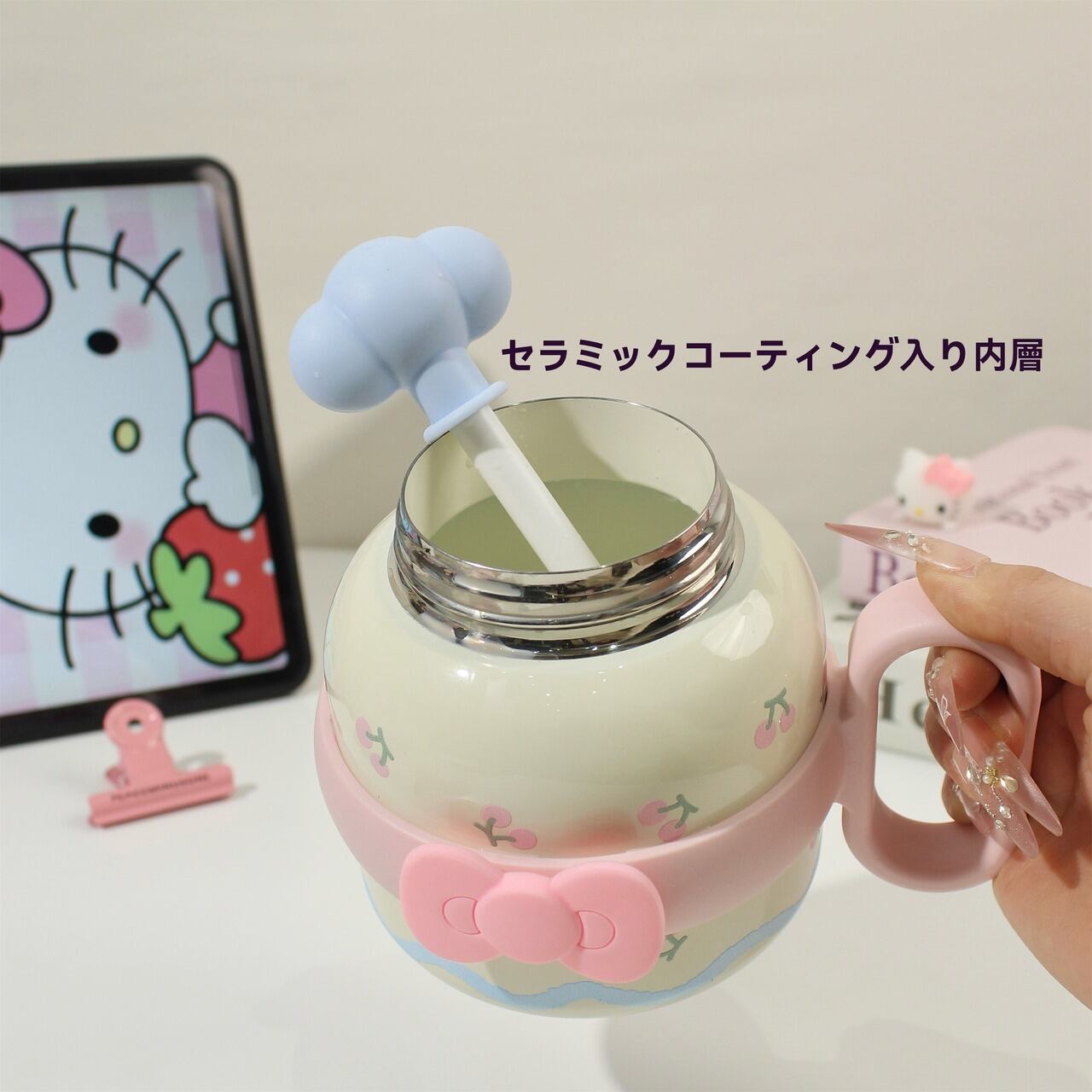 【商品名】大容量保温マグカップ おしゃれストロー付き