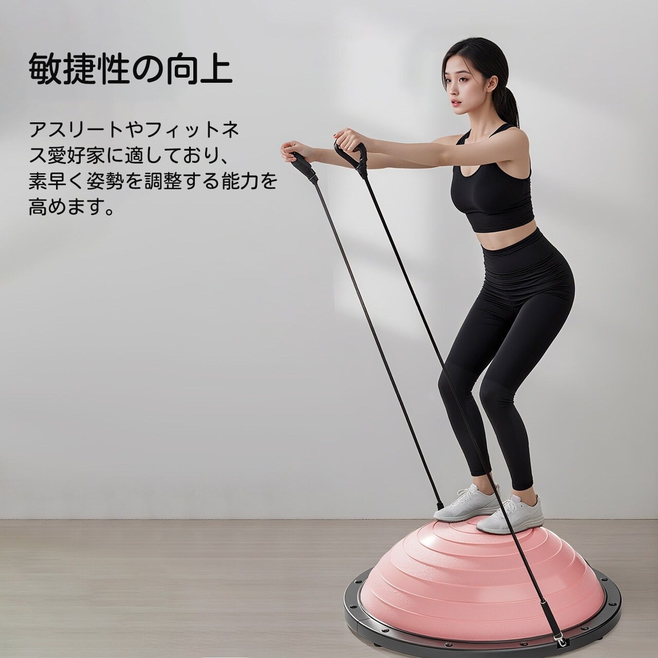 スキー・バスケットボールなどアスリートやフィットネス愛好者に最適。動作中の素早い姿勢調整力を鍛える。