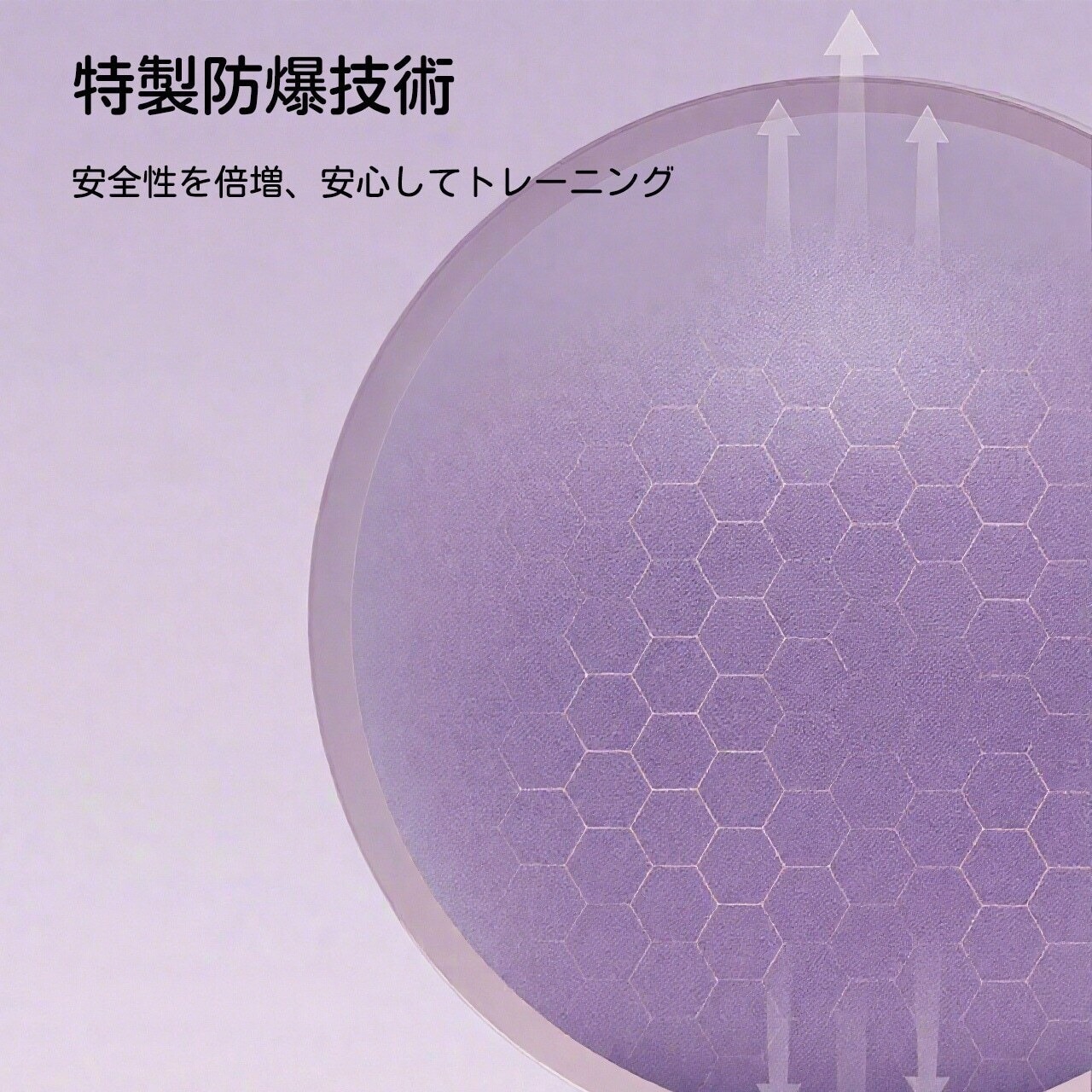 → 厚手PVC+防爆加工で、静荷重100kgOK。押しても割れず、安心して運動できる。