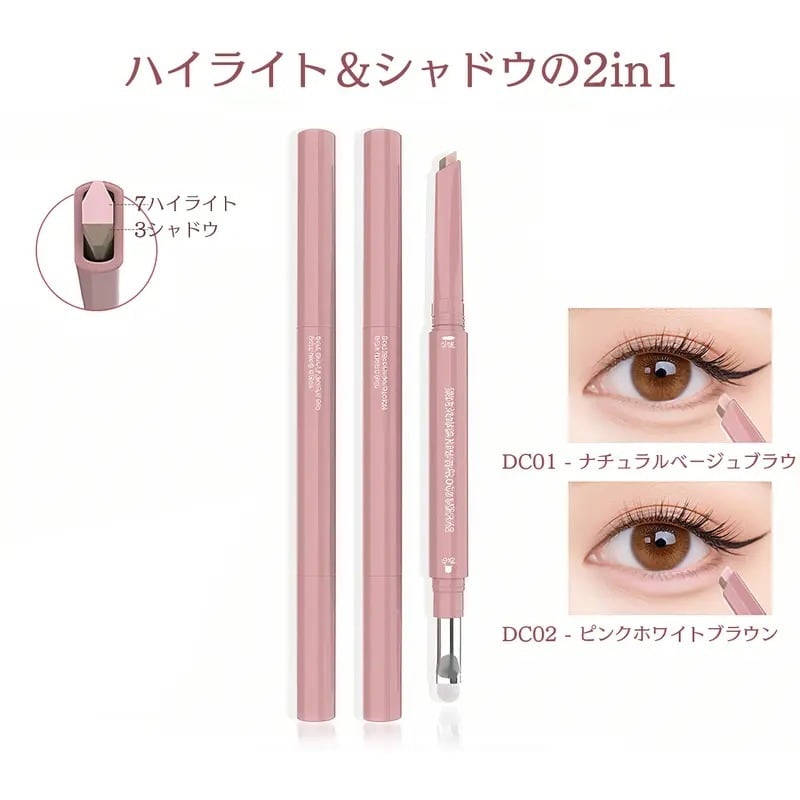 ・2-in-1設計で、ハイライトとシャドウを簡単に使い分けできる