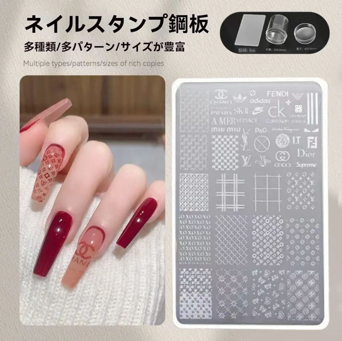 ネイルアート用スタンププレート(レース・蝶・花柄・チェック模様)は、創作意欲を刺激する便利で楽しいネイルツールです。