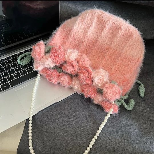 ■ 素材:高品質アクリル毛糸+パールチェーン