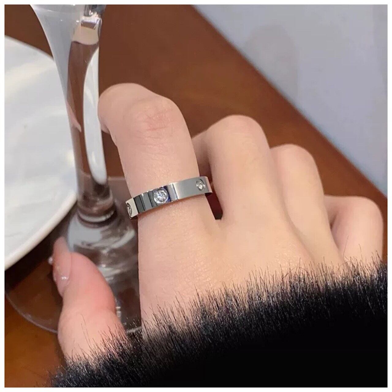 【プレミアムチタンスチールリング】 ジルコニア埋め込み|クールなミニマルデザイン | ANDYのライフハック