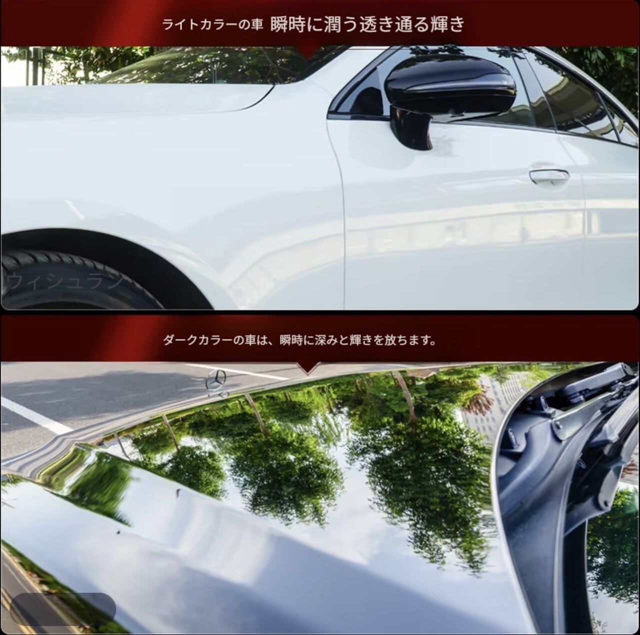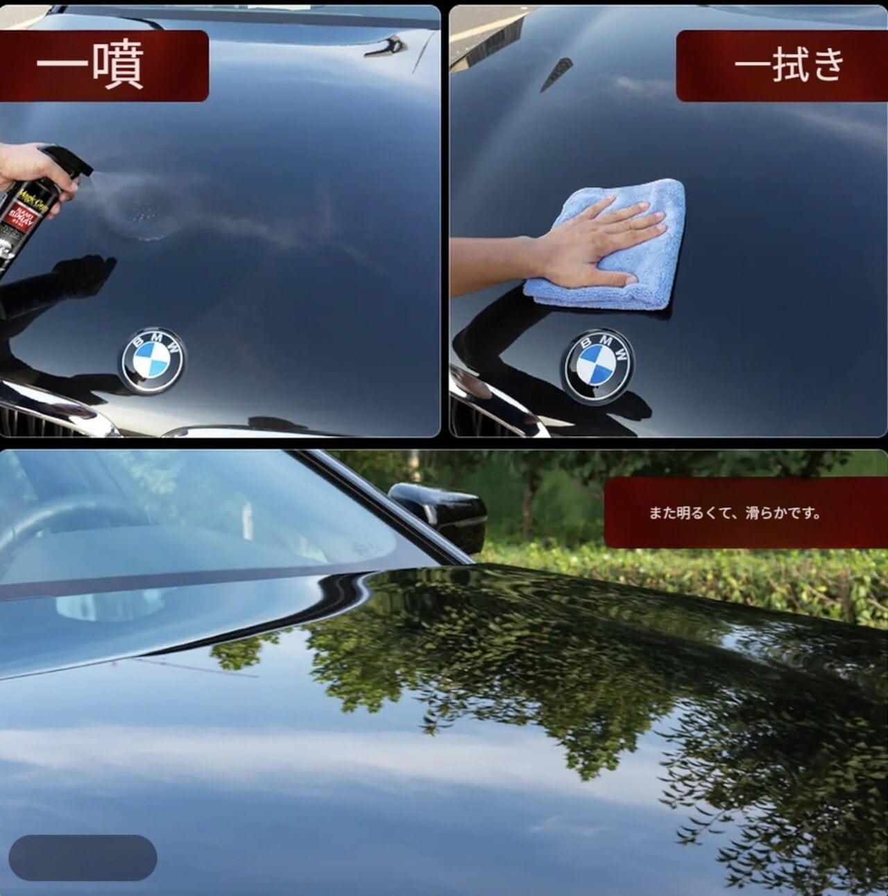 - 愛車の艶を取り戻したい… → 艶出し効果で、輝くボディを簡単に手に入れることができます。
