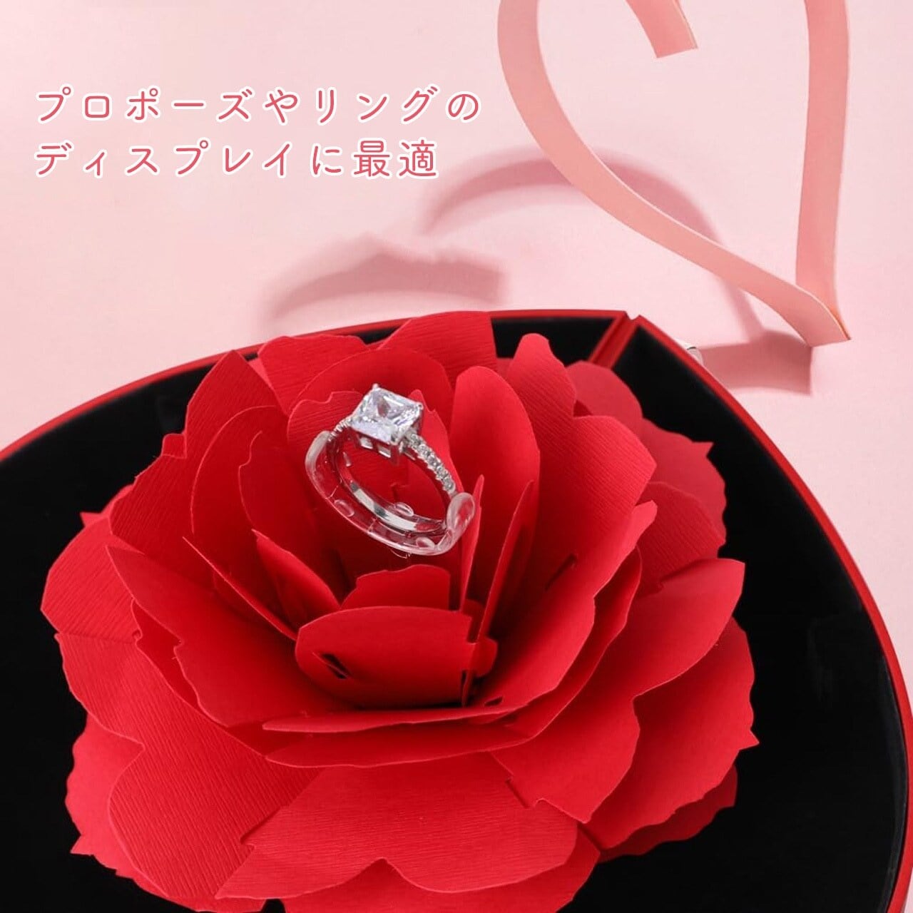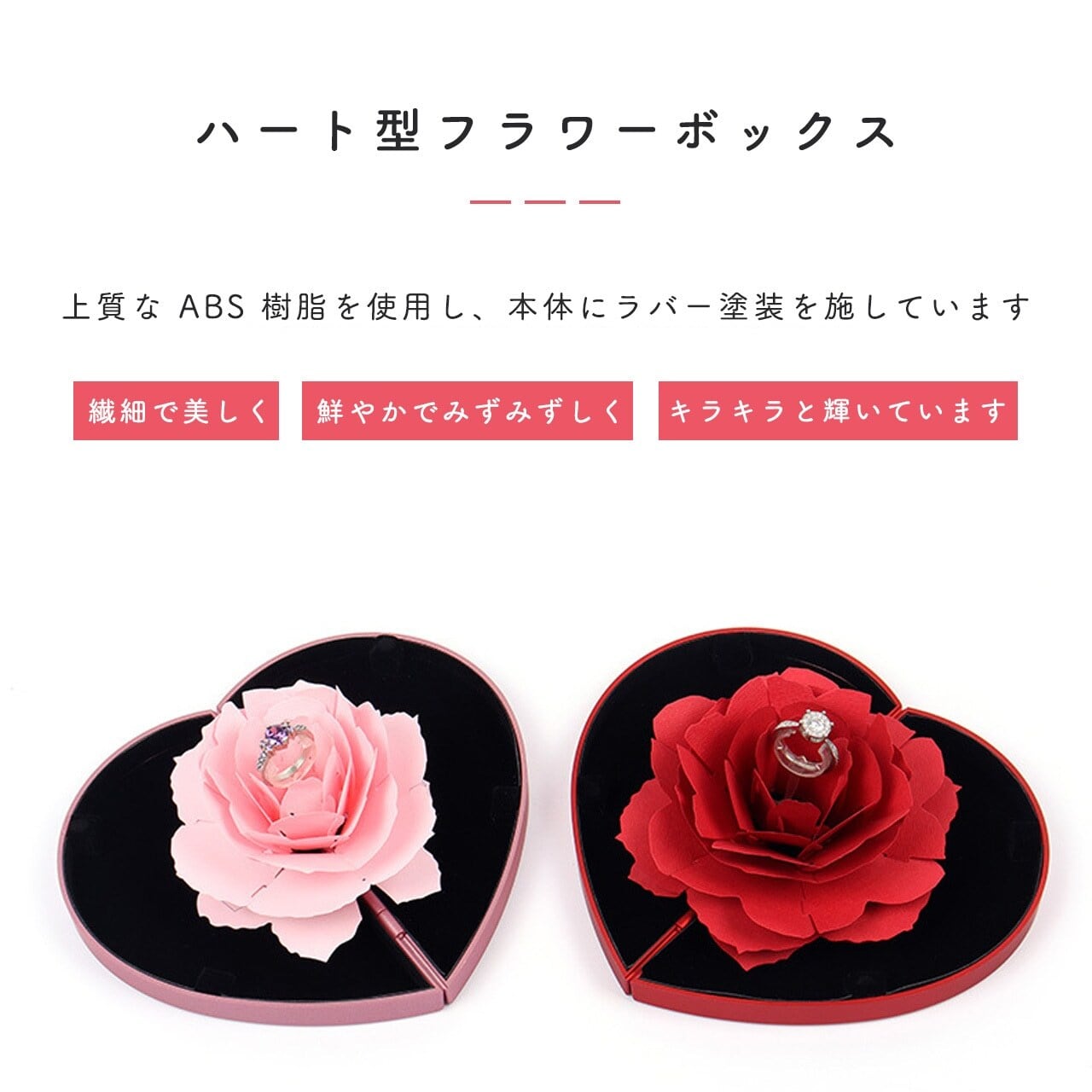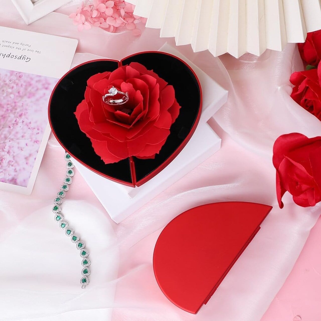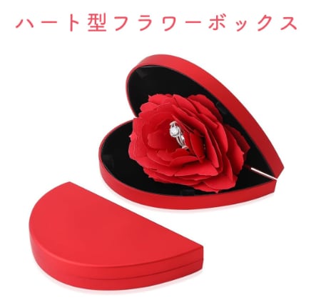 クリエイティブ回転式 七夕・バレンタイン プリザーブドフラワーギフトボックス ハート型アクセサリーケース(リング・ネックレス用)