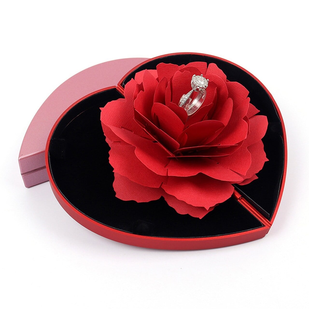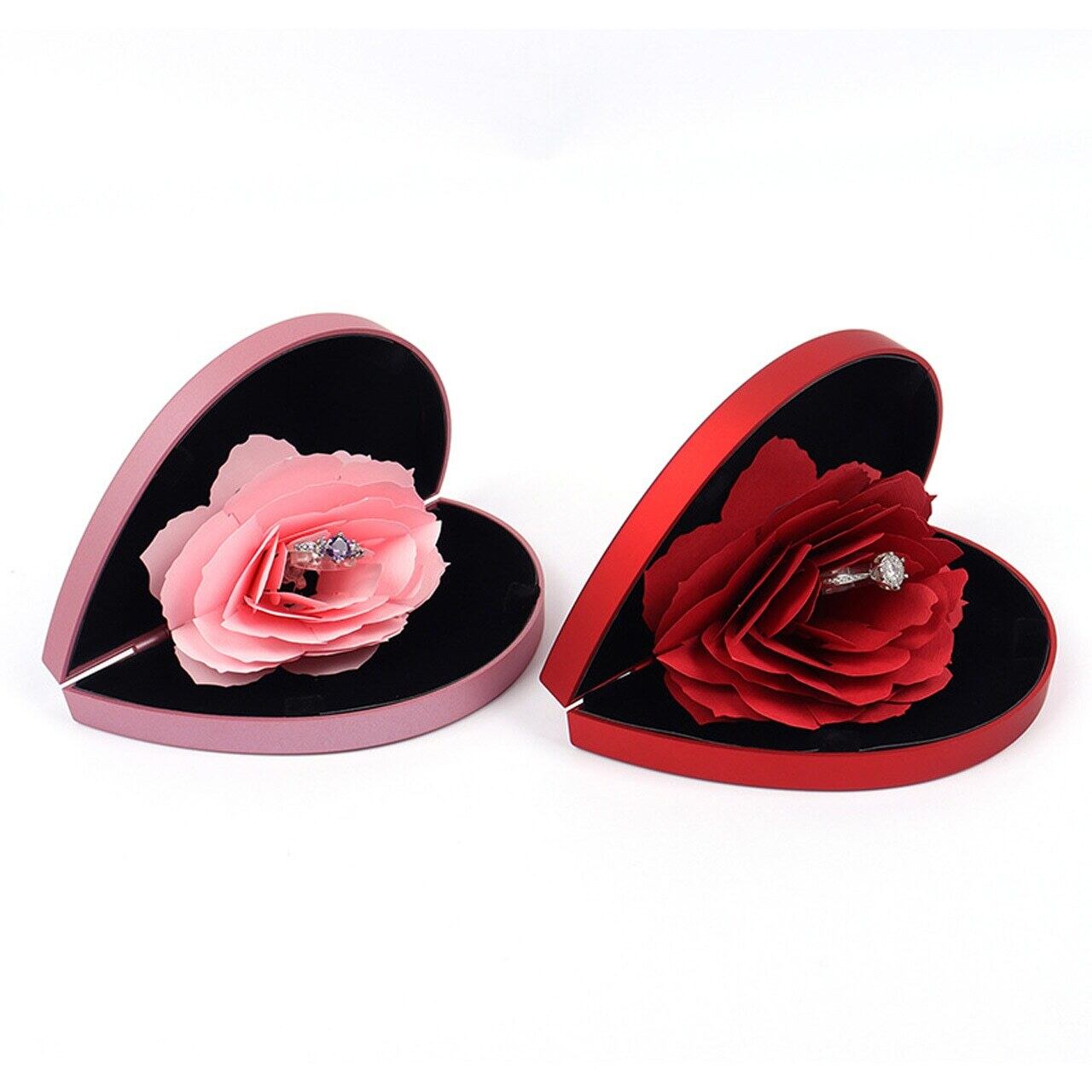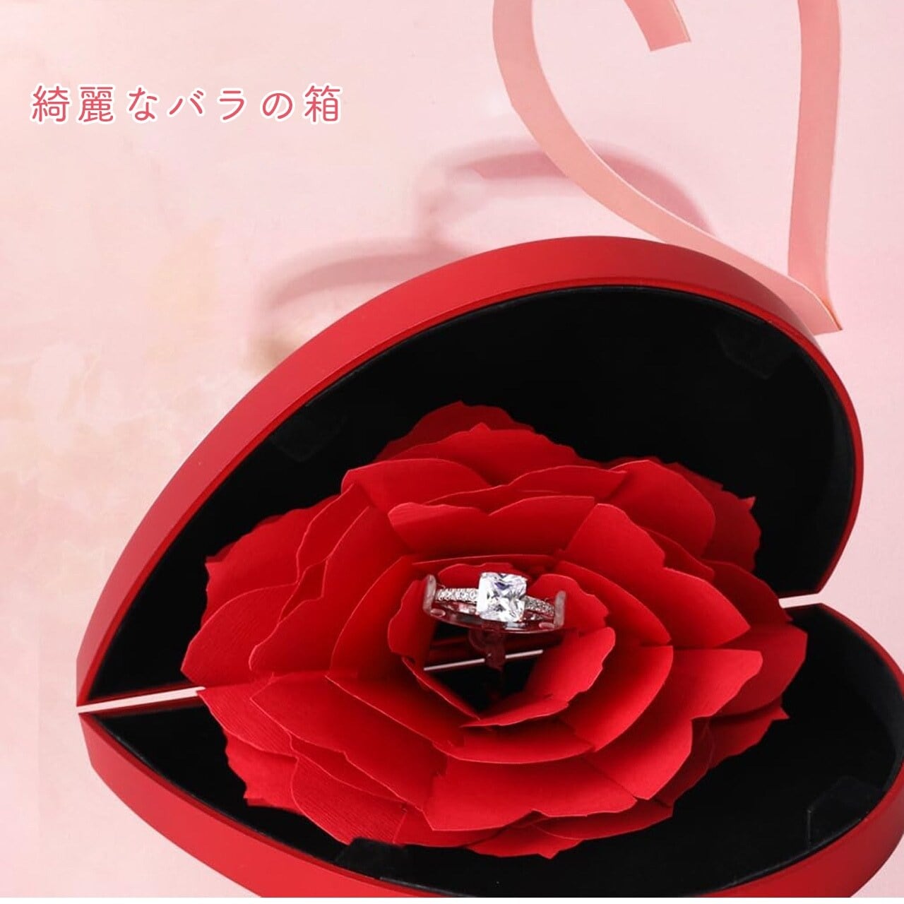 クリエイティブ回転式 七夕・バレンタイン プリザーブドフラワーギフトボックス ハート型アクセサリーケース(リング・ネックレス用)